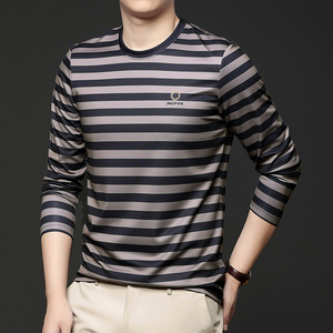 专柜正品保罗t恤男士条纹卫衣 圆领中年爸爸 打底羊毛 桑蚕丝上衣