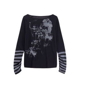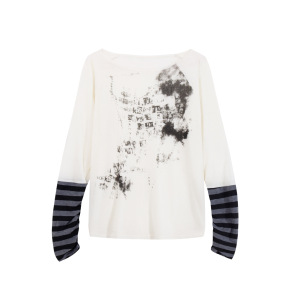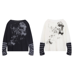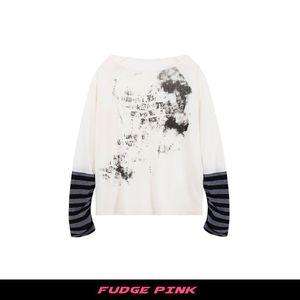 Fudge Pink 25秋季New美式复古辣妹宽松慵懒一字肩拼接长袖T恤