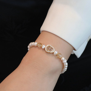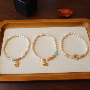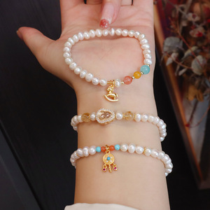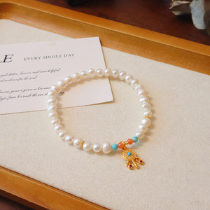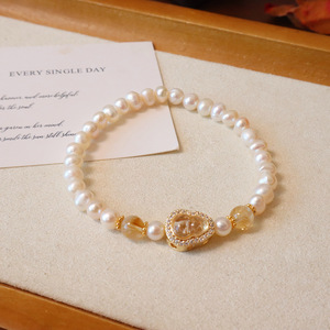 天然淡水珍珠手链女黄塔晶马上有钱吊坠百搭珍珠首饰闺蜜礼物