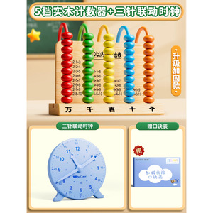 【升级加固】五档计数器+三针联动时钟+100根方形棒/赠口诀表