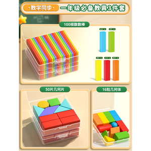【必备教具3件套】16粒几何体+50片几何片+100根数数棒