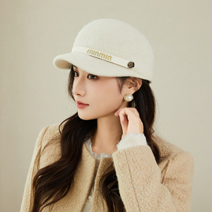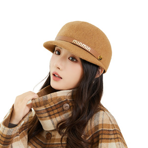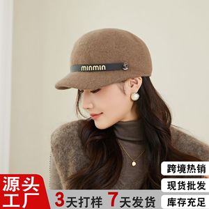 秋冬季羊毛呢贝雷帽女时尚百搭圆顶鸭舌帽户外保暖旅游帽子潮批发