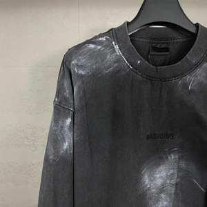 正确版本毒家25FW高品质前后字母刺绣手绘漆涂鸦洗水磨烂长袖卫衣