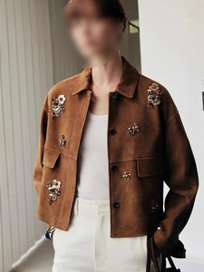 实拍真皮進口麂皮绒纽扣美式短款外套女2025小个子洋气夹克重工女