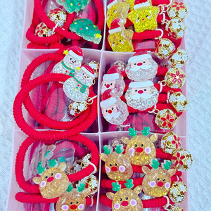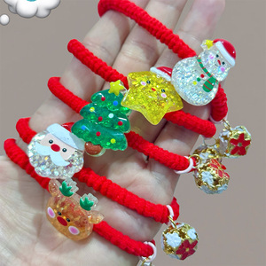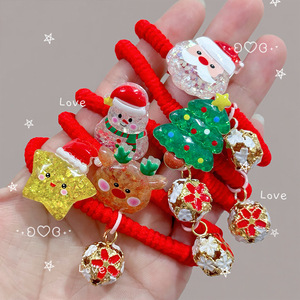 亚马逊跨境圣诞节儿童发饰创意喜庆红色发绳高弹力卡通皮筋发圈