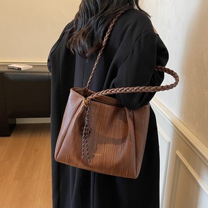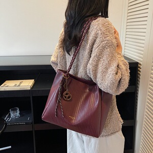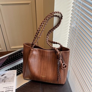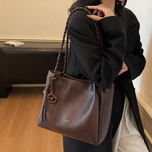 托特包复古编织纹单肩包大容量通勤托特包2025秋冬新款简约手提包
