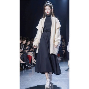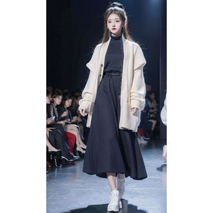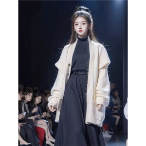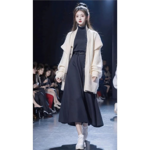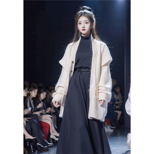 秋装搭配一整套新中式国风设计感毛衣外套针织连衣裙高级感套装女