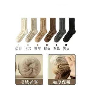 澳绒新款袜子女加厚少女糖果色纯色双针保暖居家甜美风女中筒袜