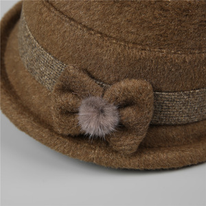 冬季优雅蝴蝶结女士妈妈帽子中老年人渔夫帽秋天毛呢保暖防风盆帽