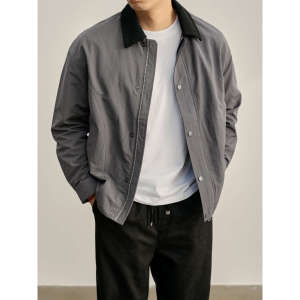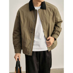 撞色翻领防风户外夹克美式下摆抽绳巴恩风boxy短宽男士外套