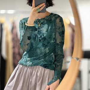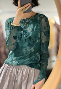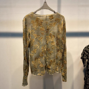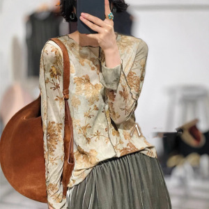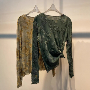 南油女装2025秋款复古时尚双层定位打密边植绒打底衫气质通勤上衣
