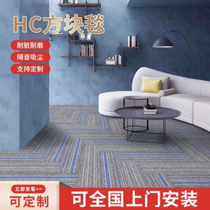 灰色带彩条拼块地毯商业楼办公区防水防滑垫子大面积满铺商业地毯