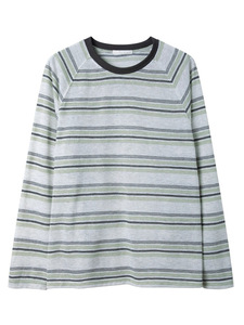 盐系绿条纹休闲长袖防晒衫罩衫薄款透气宽松复古T恤
