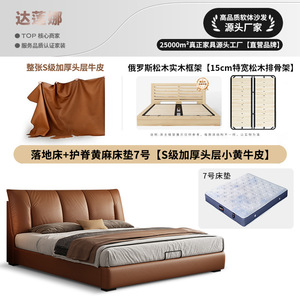 落地床+护脊黄麻床垫7号【S级加厚头层小黄牛皮】