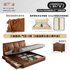 三抽屉床+气压+2柜【S级加厚头层小黄牛皮】