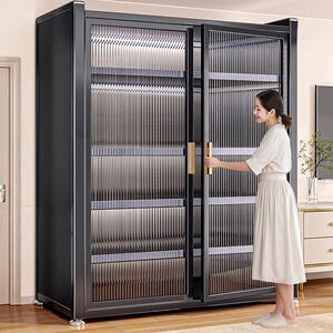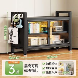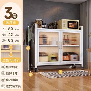 爆款厨房橱柜碳钢对开门储物柜多层带门收纳微波炉置物柜带轮子