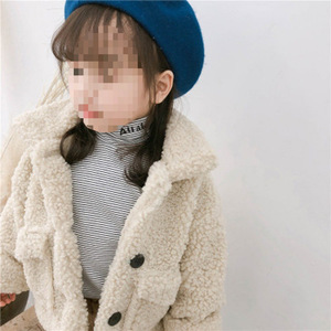2025秋冬韩版儿童纯色羊羔绒翻领保暖外套男童女童加厚短款大潮流