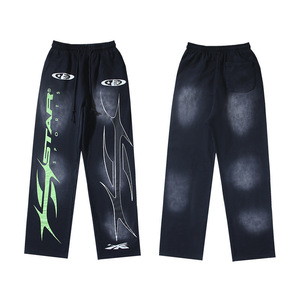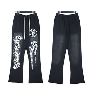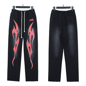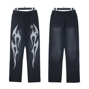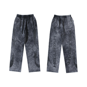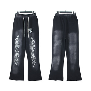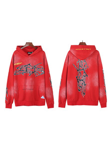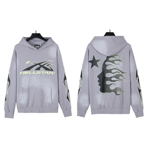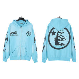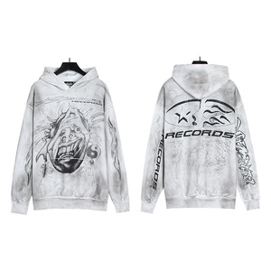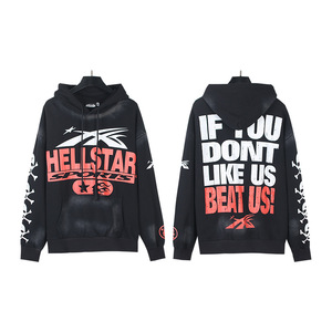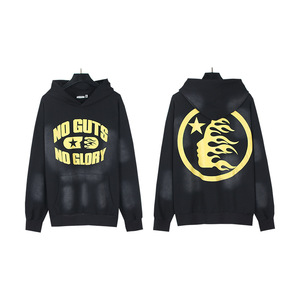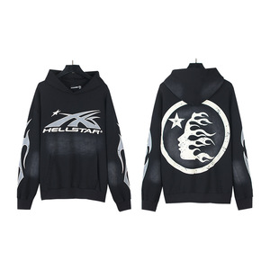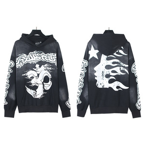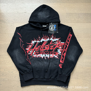 跨境美式2025秋地狱新款街头嘻哈潮牌洗水做旧帽衫卫衣卫裤套装男
