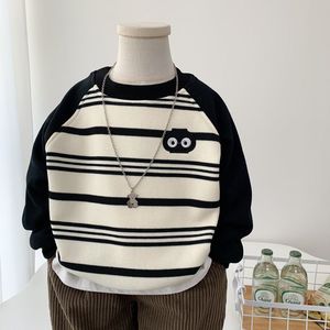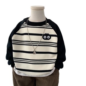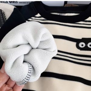 秋冬季新品棉打底加绒上衣男童一体绒条纹卫衣儿童棉插肩袖套头衫