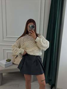 精致气质温柔风重工钩花毛衣 杏色显白圆领套头宽松落肩长袖上衣
