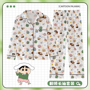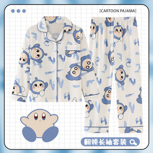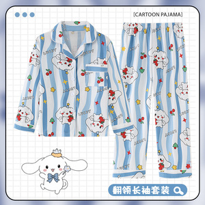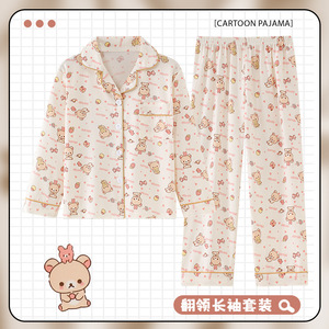 春秋季儿童睡衣女童可爱卡通翻领开衫长袖长裤宽松亲子套装家居服