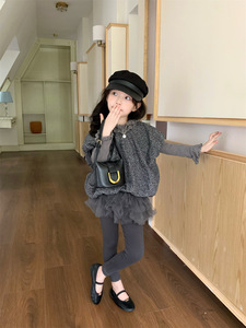 2025秋季新款 女童时髦套装儿童马甲背心+木耳边打底衫+纱纱裙裤
