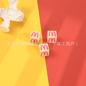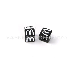 M字母印花大孔方块珠串珠亚克力DIY手机链包包挂件发绳饰品配件