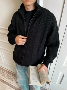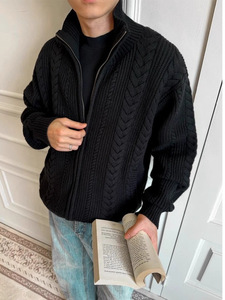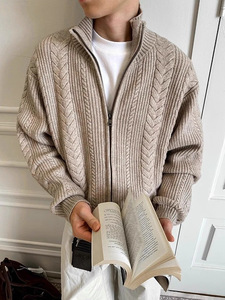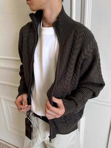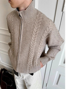 工厂复古老钱麦穗姣花保暖针织衫毛衣秋冬季花型肌理立领短宽外套