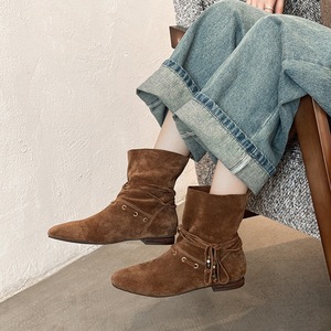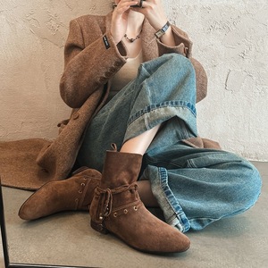 圆头复古短靴女平底绑带2025秋冬新款小众美拉德慵懒堆堆靴