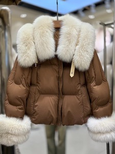 2025冬新款欧货高端皮草狐狸大毛领白鸭绒羽绒服保暖外套小个子女