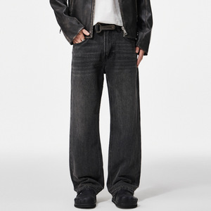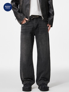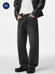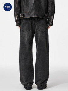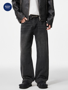 沐丘男装∣50°灰复古高级感美式牛仔裤男士宽松直筒水洗做旧长裤