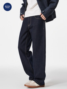 沐丘男装∣美式复古水洗原色休闲牛仔裤男宽松高级感阔腿直筒长裤