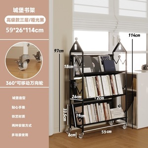 儿童铁艺书架绘本架子玩具收纳移动落地书柜简易多层置物架家用