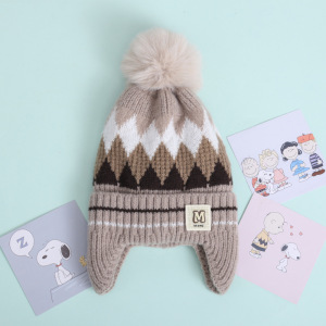 儿童保暖帽子秋冬季针织加厚毛线帽男女童菱形防风加绒护耳帽百搭