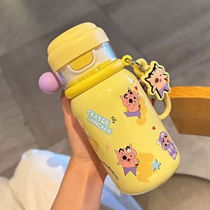 新款蜡笔小新保温杯女生高颜值吸管杯316不锈钢学生上学专用便携
