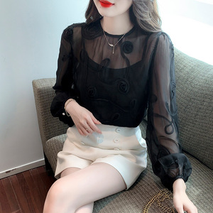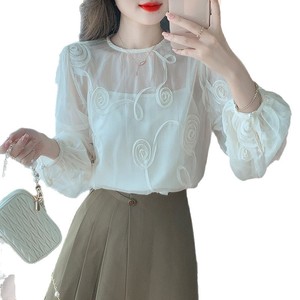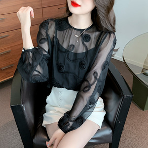 立体花朵超仙蕾丝衫小衫女跨境2025秋季新款时尚百搭圆领长袖上衣