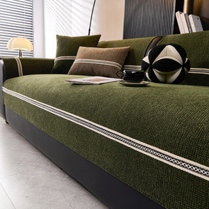 雪尼尔防滑沙发垫四季通用轻奢高级感长条简约皮沙发坐垫套罩纯色