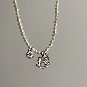 设计感旋转木马钱币珍珠项链女轻奢时尚潮流通勤百搭颈链锁骨链