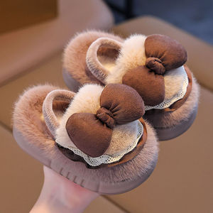 冬季儿童棉拖鞋女童保暖加绒踩屎感松紧带蝴蝶结亲子宝宝包跟棉鞋