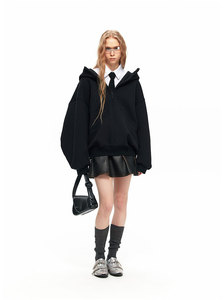 NUTH“凝聚空气”黑色宽松百搭oversize连帽卫衣宽松拉链厚外套