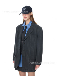 现货韩国GROVE条纹西装外套早秋新款学院风包臀短裙西服套装女装