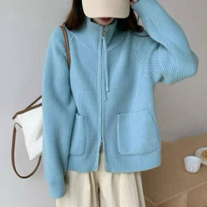 双拉链长袖针织开衫女秋冬新款大码跨境慵懒风宽松毛衣开衫外套女