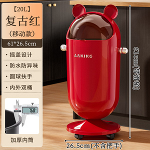 红色-带轮-大号20L丨免弯腰/万向轮可移动