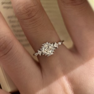 通体S925纯银公主方雪花钻戒指女士简约小众高级感精致高碳钻指环