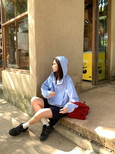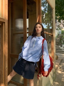 你好卡农 韩系半开襟连帽休闲短外套女春夏2025新款宽松套头上衣