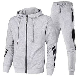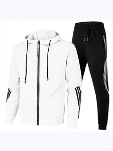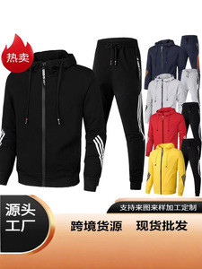 跨境春季新款时尚男士三条杠运动套装连帽卫衣休闲运动服热卖同款