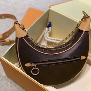 外贸新款老花豌豆包经典百搭单肩斜跨月亮包腋下女包真皮链条包包