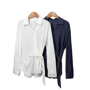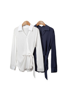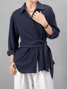 云长 亚麻扭结长袖衬衫女士秋季薄款宽松设计感不规则衬衣 K0110