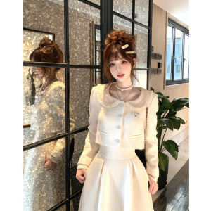 富家千金蕾丝花边短外套高腰显瘦半身裙秋季新款小香风气质套装女