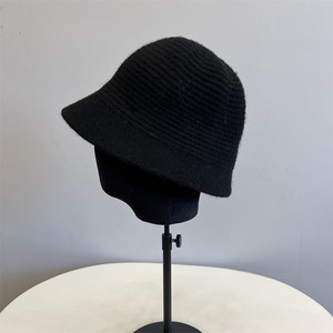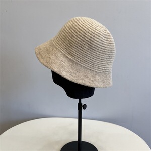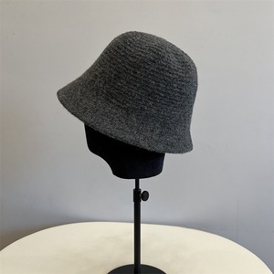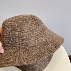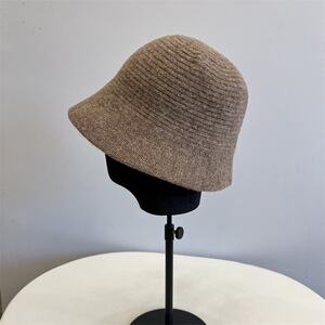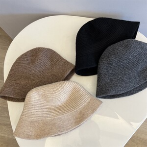 全羊毛细密针织前长后短盆帽女生秋冬韩版简约日系复古保暖渔夫帽